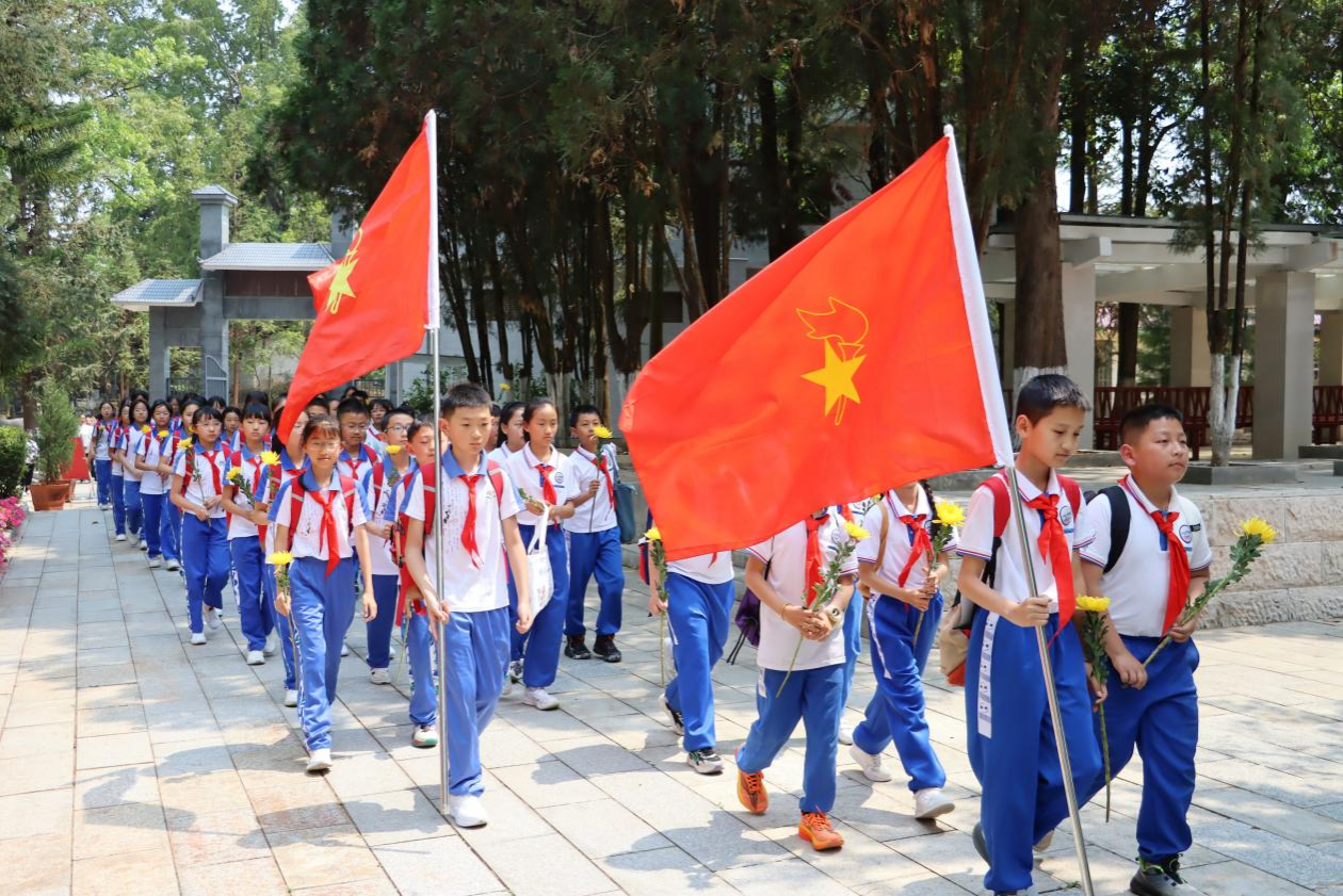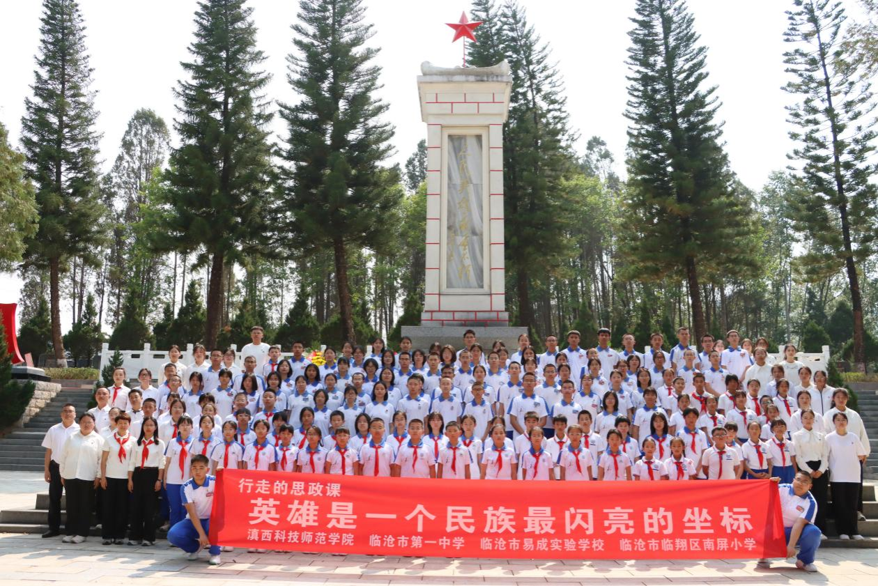 陵园埋忠骨,清明祭英烈。组织大中小学师生共同前往临沧烈士陵园进行清明祭扫活动,活动特别设置“朋辈帮扶”机制,由滇西科技师范学院教师教育学院学生担任“红色讲解员”,带领中小学生完成红色故事搜集分享,故事中的人、事、情,感染了每一名学生,坚定了“请党放心,强国有我”的信念,实现教育资源共享与精神传承双赢。