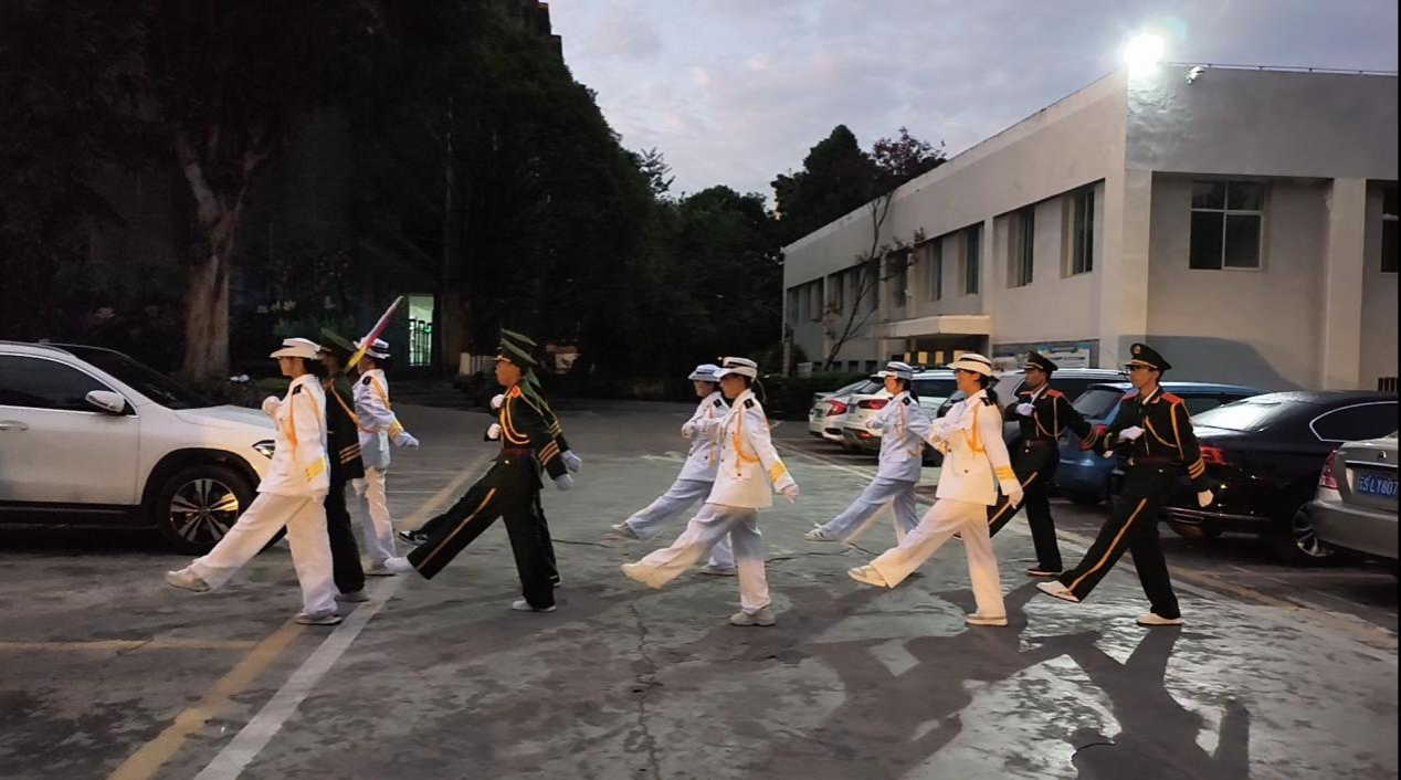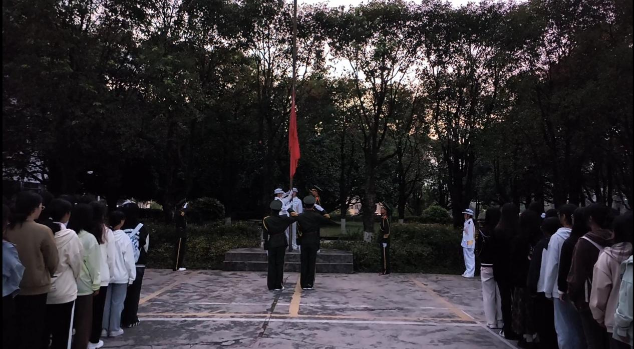 五星共阳光一色,国旗与朝霞同辉。早晨7时,学校国旗护卫队队员迈着整齐铿锵的步伐,护送国旗行至升旗台。随着《义勇军进行曲》的雄壮旋律,全体师生整齐列队,向国旗行注目礼,国旗下的青春熠熠生辉,青春中的国旗久久飘扬!
